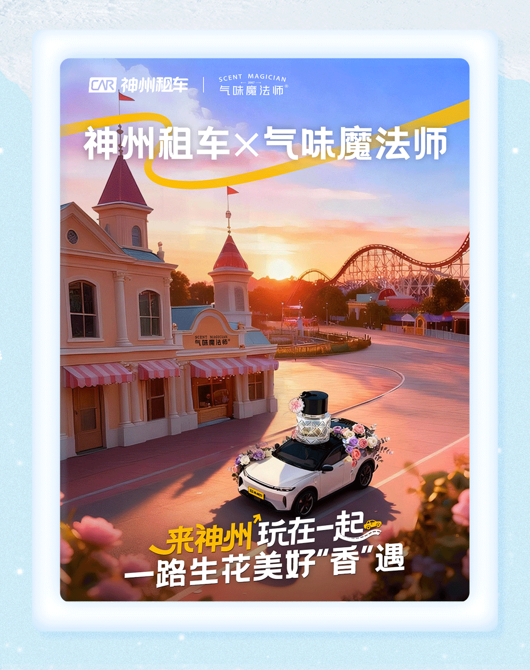 近日,『香氛』品牌“气味魔法师”与出行服务领导品牌神州租车正式宣布达成合作。此次合作并未停留在简单的跨界联名,而是旨在将双方的核心优势进行深度融合,共同开创场景化出行体验的新范式。