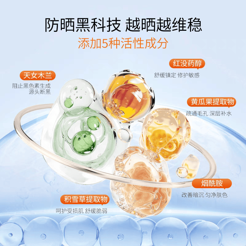 三大防晒分子用起来不会渗透进皮肤,成分温和,很适合『敏感肌』的姐妹使用,上脸也很水润,成膜很快,防晒力也非常不错,不会有黏腻感