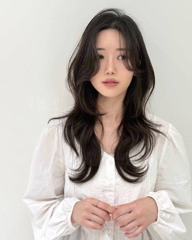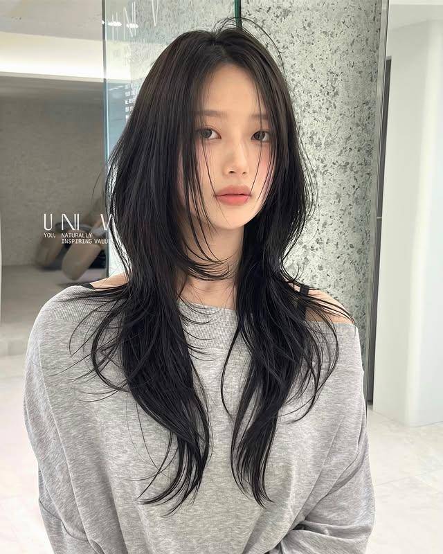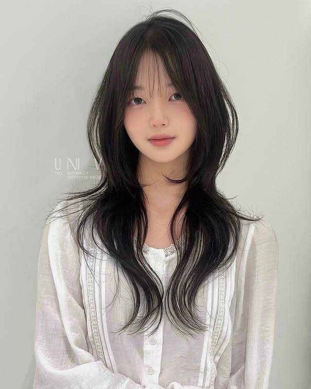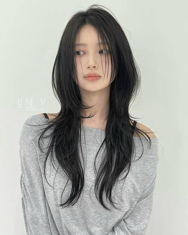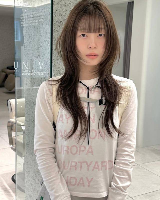 这款发型的可塑性极强,通过发色与造型细节的调整,能轻松驾驭三种风格。清冷破碎风以自然黑发或冷棕色为主,微湿的发丝自然垂落,几缕碎发贴在脸颊,搭配简约的白色衬衫或黑色『针织衫』,自带韩剧女主的清冷气质,是日常通勤与校园场景的绝佳选择。