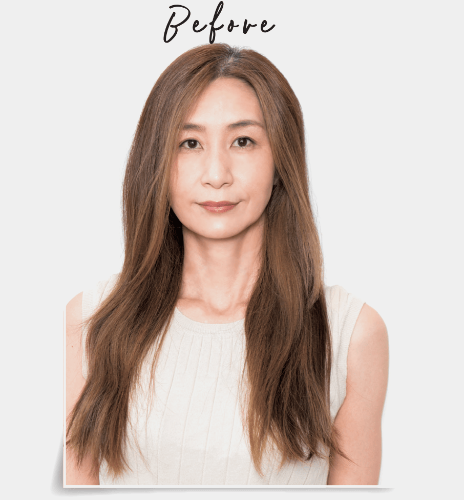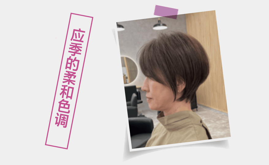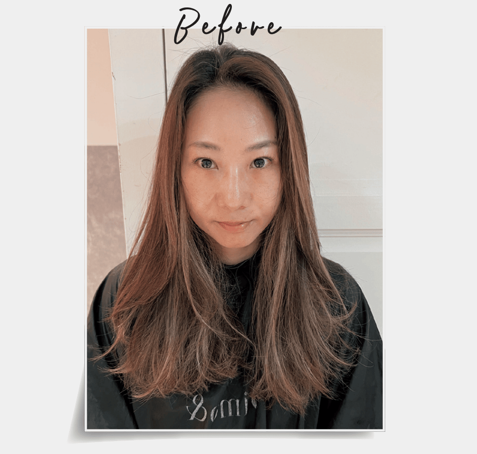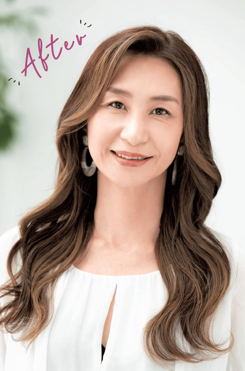 42岁S女士:“我比较喜欢明亮的发色,所以原本就没有对白头发进行染黑处理。染发中由于加入了高光色,根部的白头发“完美隐身”,变得一点都不显眼了。我对这次的造型非常满意。”
