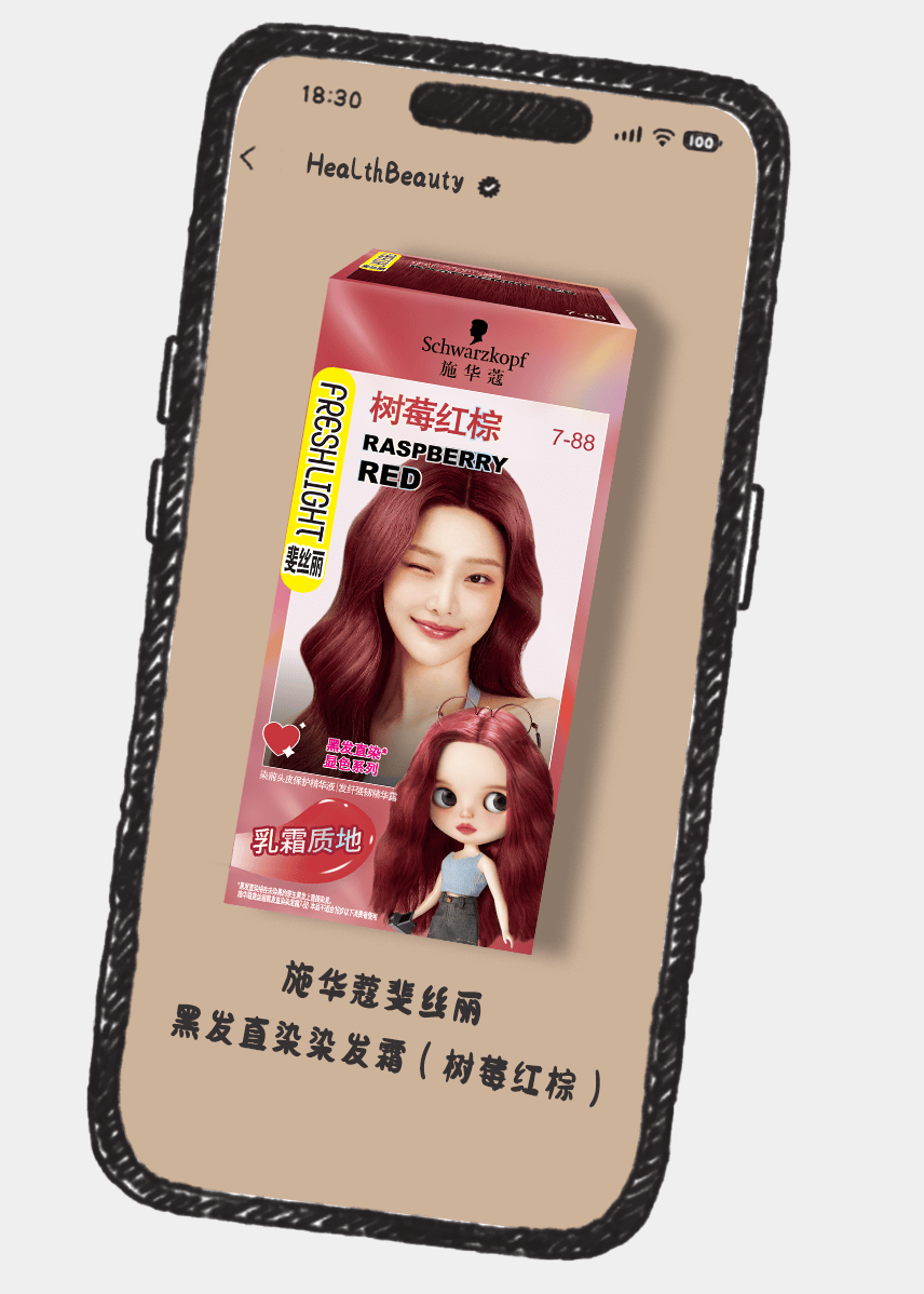 施华蔻斐丝丽黑发直染染发霜(树莓红棕)全新添加染前精华液隔离头皮、染时精华露强韧秀发,染后发丝柔顺不干枯,水润光泽更持久。树莓红棕色号糅合葡萄酒红与莓果甜感,个性红调张扬明媚却不落俗套。