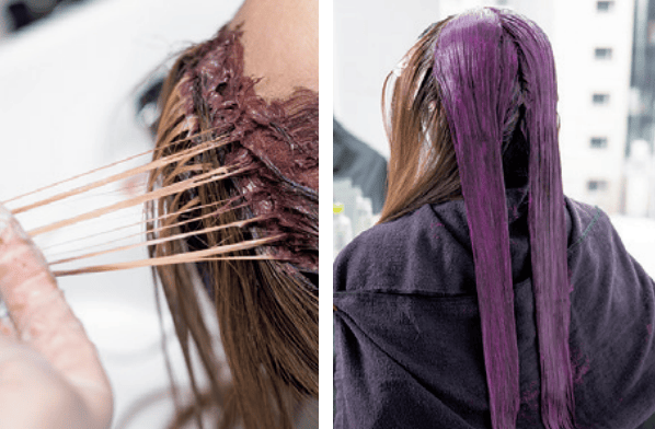 以毫米为单位的细发丝上涂抹染发膏,刘海也需要加入高光色。