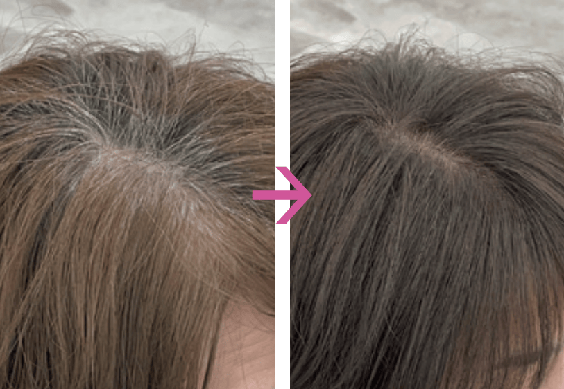 对那些还没到需要染黑的程度,却很在意零星白头发的人来说,可以染一个稳重色调的高光染。 1 个月后长出来的白头发与发色相互融合,打消对白头发的顾虑。