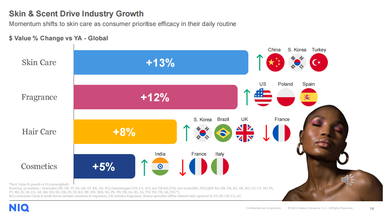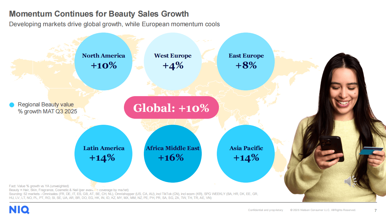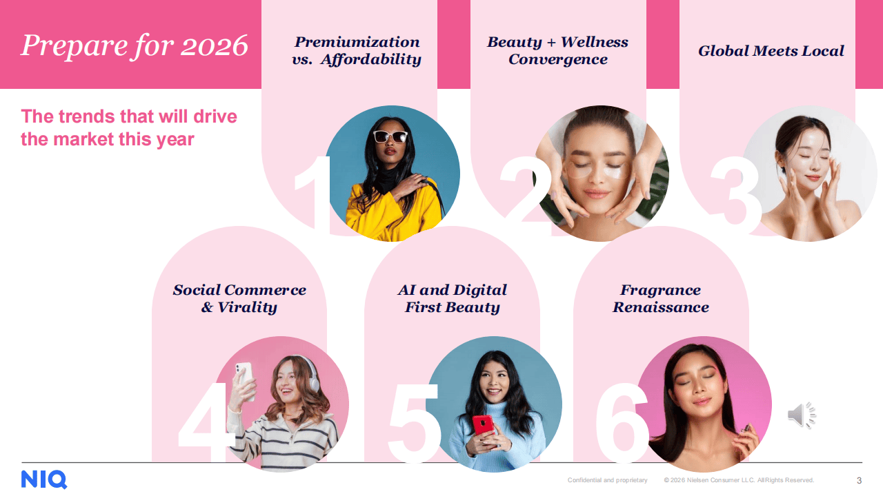 尼尔森IQ《2026年全球美容行业态势前瞻报告》指出,2026年全球美容行业保持韧性的同时迎来更高的复杂性,『数字化』成为行业核心发展主线,消费者消费行为更具目的性,在预算收紧的背景下,既追求高性价比,也向往小奢体验,对产品的简洁性、透明度与实际功效提出更高要求,『数字化』生态、AI创新与全球文化融合则重塑着行业竞争格局。