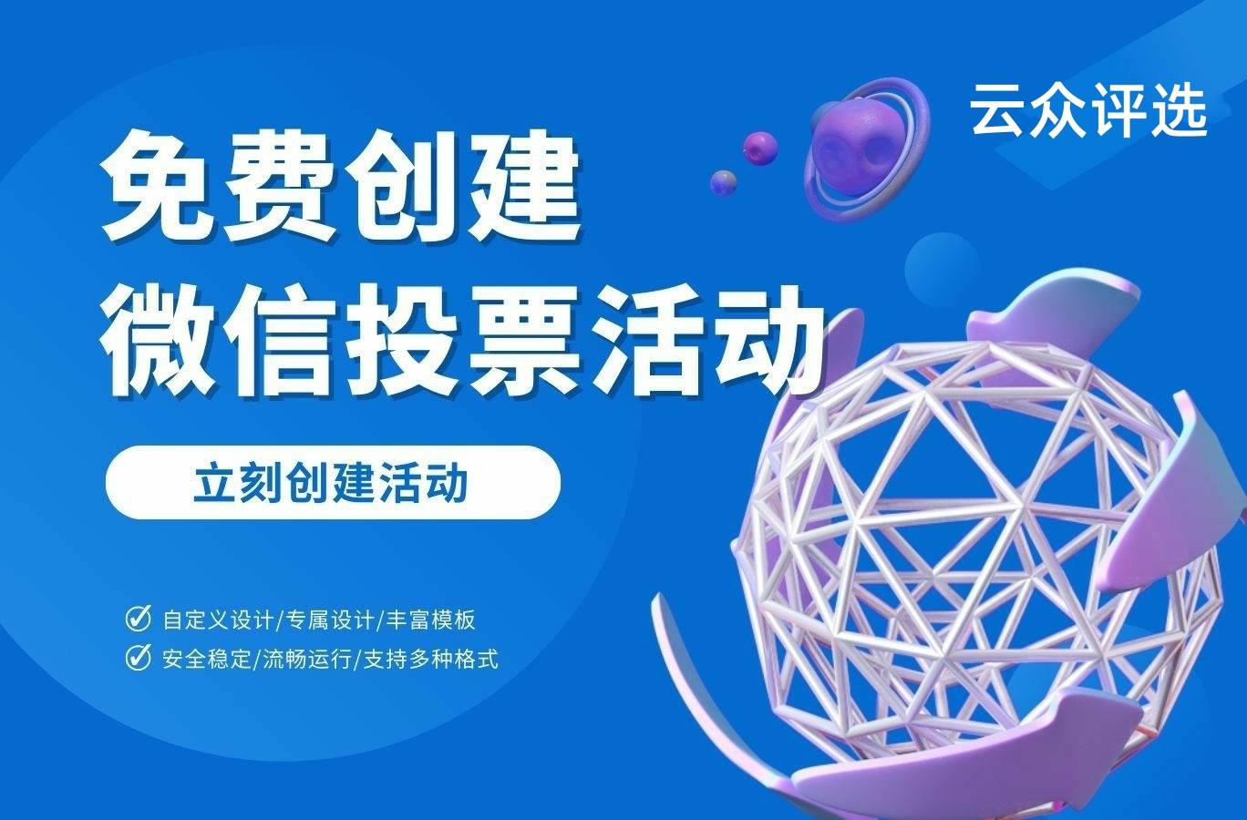:云众评选小程序,进入首页,免费发起活动。