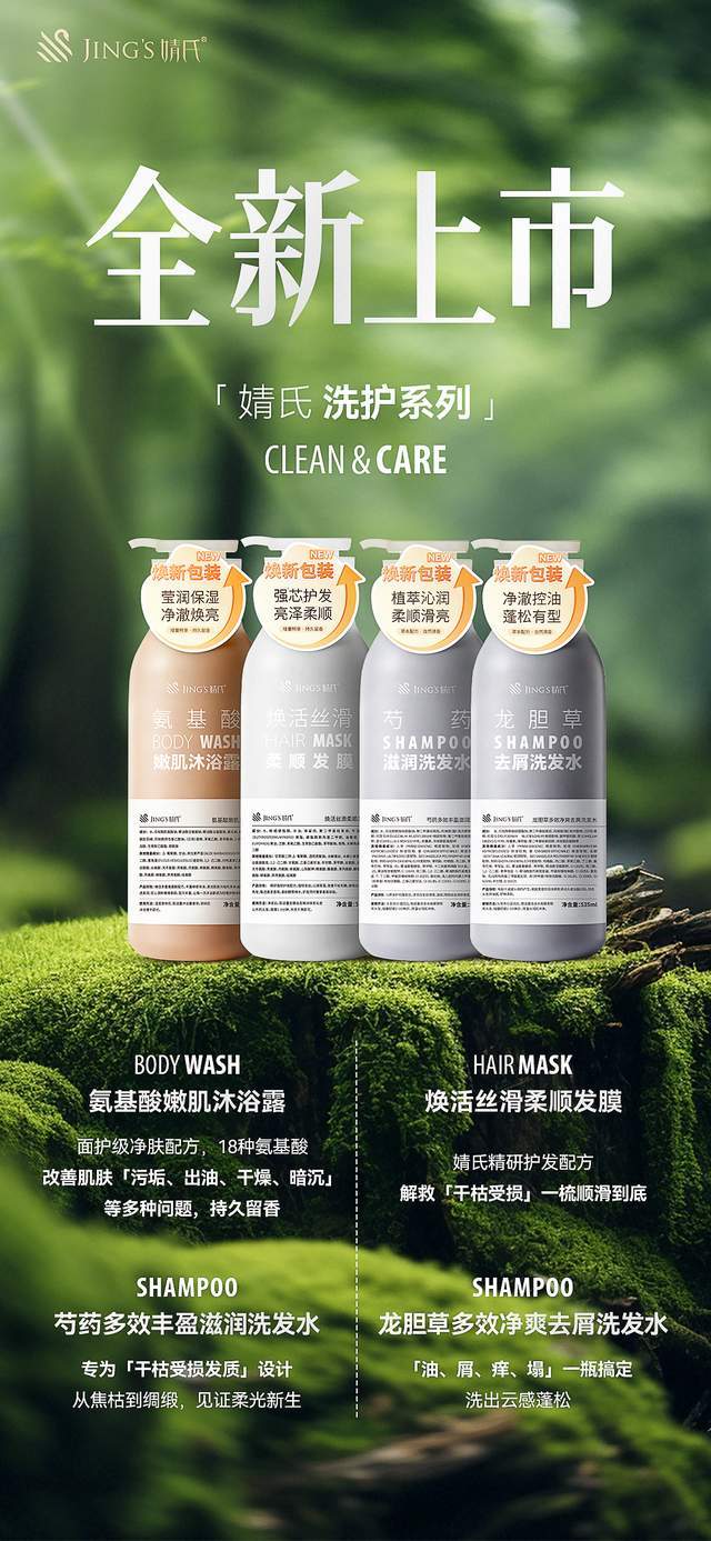 从洗发水、发膜到沐浴露,婧氏洗护系列用40%的高浓度植萃、看得见的草本颗粒,以及专业的成分配方,构建了一个完整的家庭护理闭环。它让我们意识到,高品质的生活并不一定需要昂贵的沙龙和SPA,它也可以是我们每天触手可及的日常。