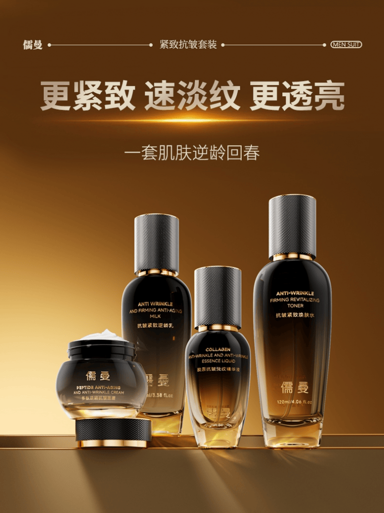 儒曼抗皱紧致淡纹保湿『补水』护肤套装定位中高端,广泛适用于25+初老肌与30+熟龄肌。