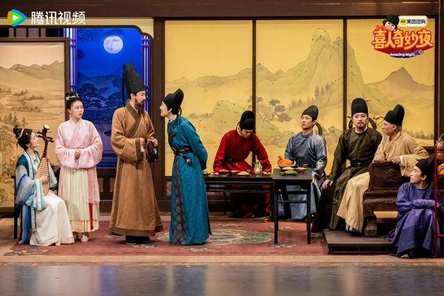 从《一年一度喜剧大赛》的“三国三部曲”,到《喜人》中对四大名著的“出圈”改编,再到今年《喜人2》数量明显增加的“故事新编”,在复旦大学中文系副教授战玉冰看来,喜剧作品选题大量选自西游、三国等传统文本,的确能反映出这些传统文学作品在当下的传播度、影响力与深入人心。“正是因为这些作品群众基础好,其‘二创’和改编会降低观众的接受门槛;而《夜宴》是一个例外,《韩熙载夜宴图》的大众认知度远不能和《西游记》《三国演义》相比,甚至很多观众可能通过这场表演反过来加深了对这幅画的认识,这一点比较难得。”