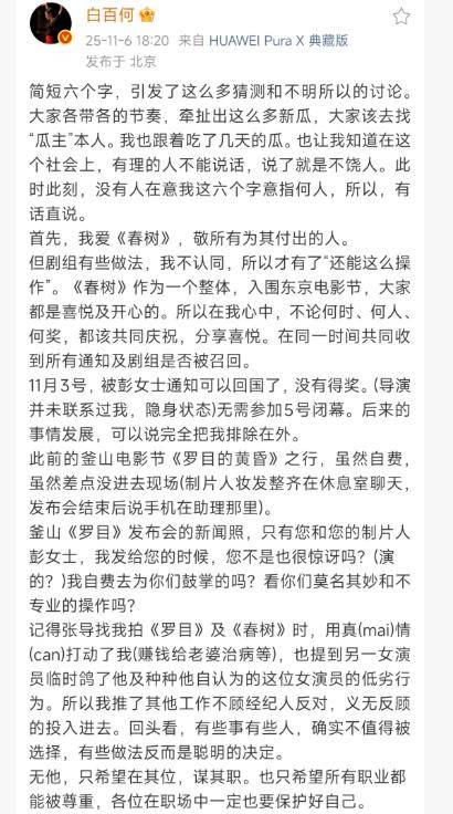 当『白百何』随后揭露高露的私人生活时,网友们才意识到,原来她当初的那条动态是在暗示自己未能获奖,反而是高露赢得了奖项。此后,『白百何』与高露之间的微妙关系渐渐浮出水面。许多人开始怀疑『王传君』的获奖是否也同样是她通过某种方式加以操作,直到这些传闻逐渐发酵,『王传君』的形象也因此遭遇了不小的冲击。