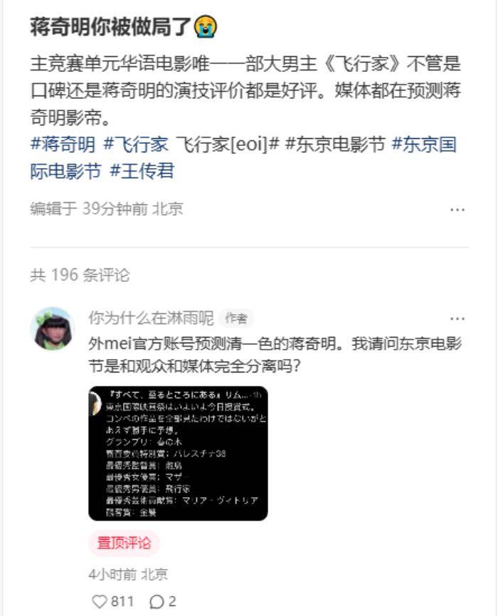 与此同时,另一位影帝候选人蒋奇明的粉丝则为其抱不平。他们在『社交媒体』上挖掘并分享了多篇外媒报道,指出蒋奇明才是当之无愧的影帝,许多日本网友更是将他的演技推崇至巨星级别。这一切的争议让网友们对『王传君』获奖的公正性产生了强烈疑问,认为有幕后操作在其中。一些人甚至开始怀疑,『王传君』的获奖或许并非单纯凭实力,而是背后有所操作,暗指他所谓的“佛系”形象只是表面文章。