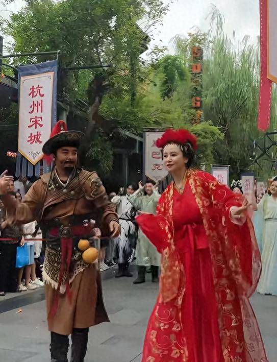 在杭州某知名景区(也是马景涛此前表演过的地方),翁虹身着鲜红色古装,重现她在经典剧集《春光灿烂猪八戒》中令人印象深刻的角色——猫妖林妙妙。