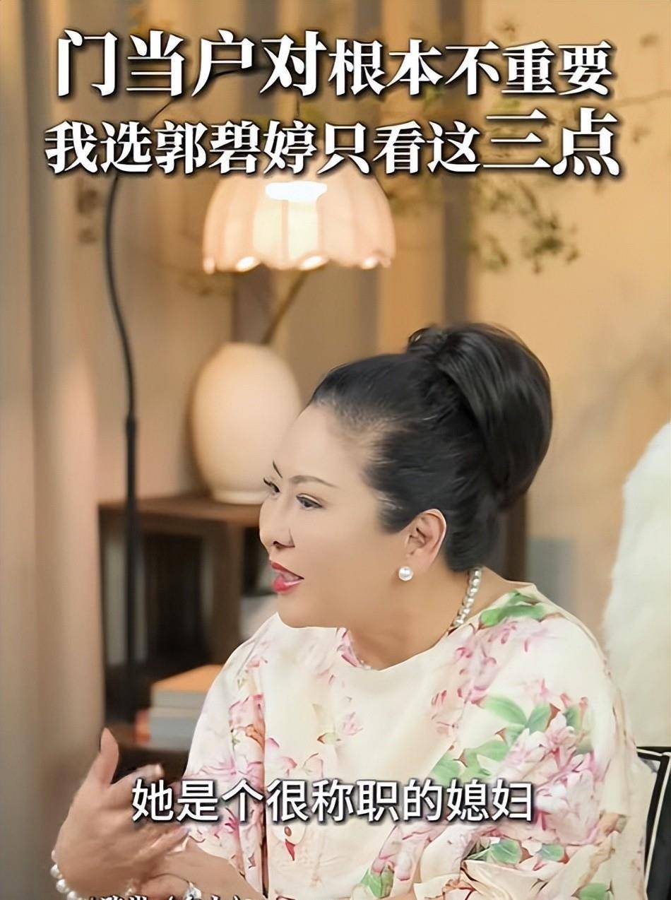 向太在挑选儿媳方面有着独特的见解,她从不掩饰自己的想法,直言不讳地表示,她并不看重对方家庭的经济条件,因为如果过于注重物质条件,反而可能引发利益矛盾,最终导致婚姻破裂。她之所以欣赏郭碧婷,是因为她心地善良、孝顺长辈。例如,郭碧婷的父亲生病时,向太完全支持她留在台北照顾,只在重要节日才带孩子回香港团聚。