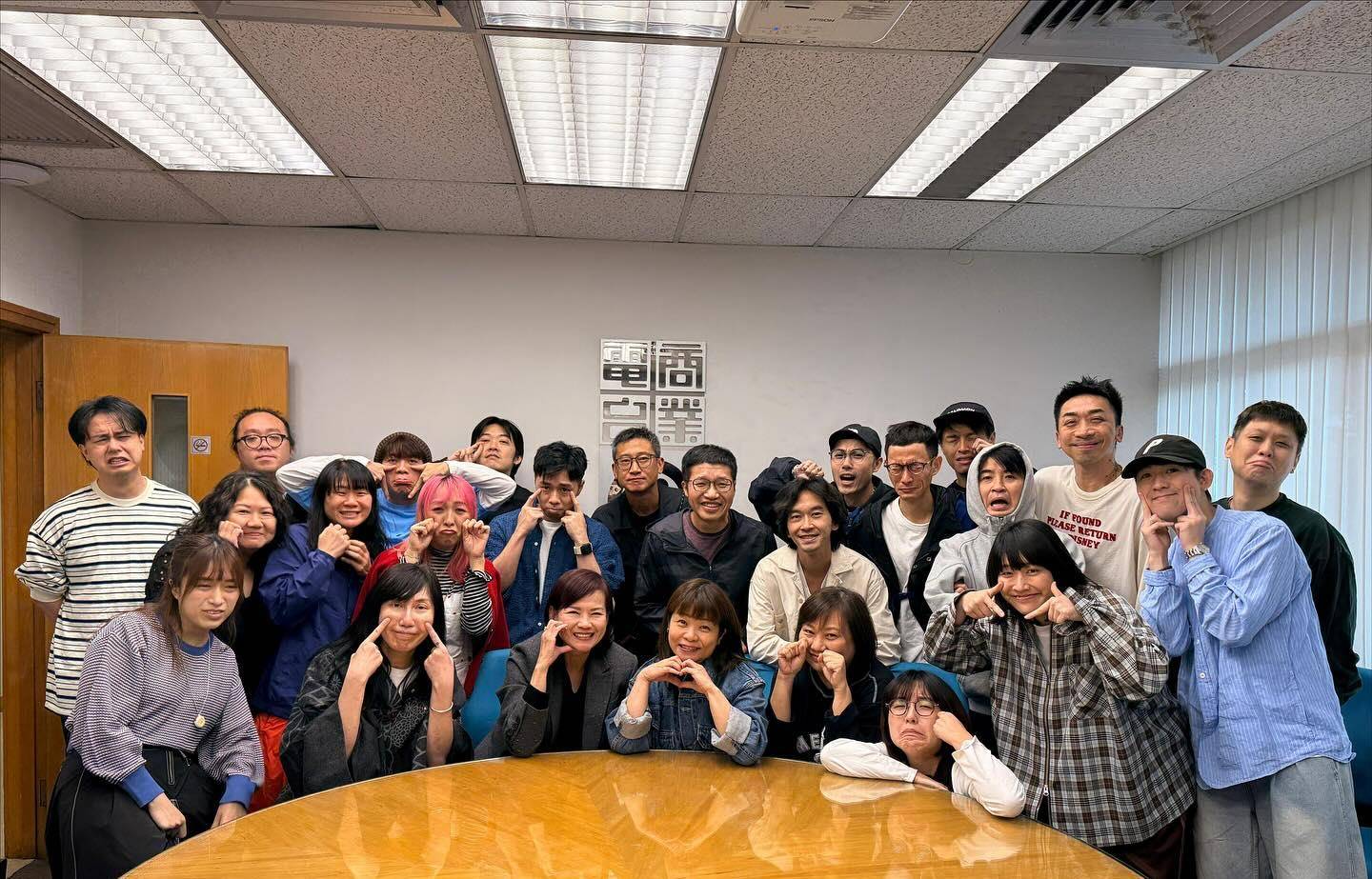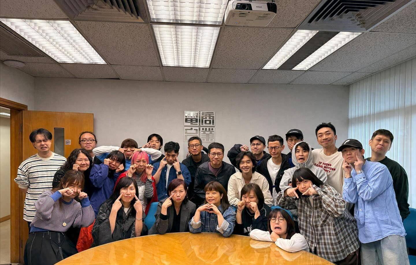 在这张具有纪念意义的合照中,阮小仪坐在会议室C位展露灿烂笑容,比出经典爱心手势,而周围的朱薰、梁文礼、Elsie、Vani、阿正、艾粒等同事则集体做出哭泣表情,生动展现对这位电台前辈的不舍之情。这张照片完美捕捉了离别时刻的复杂情绪,既有欢笑也有泪水。