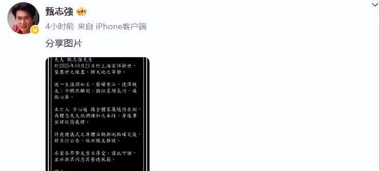 甄志强是在上周二在上海离开的,年纪停在五十九岁。他的妻子方心媛通过社交账号发布了消息,说会按照他生前的习惯,简单操办后事。