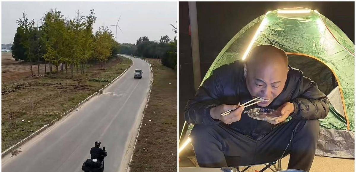 最近已经骑行很多天,自己搭帐篷,自己做饭吃,粉丝也越来越多。