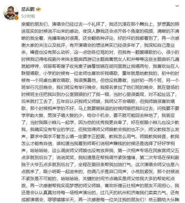 岳云鹏有了信心,才在第一次开演唱会之后,不管别人骂的有多难听,近期又开始开演唱会。