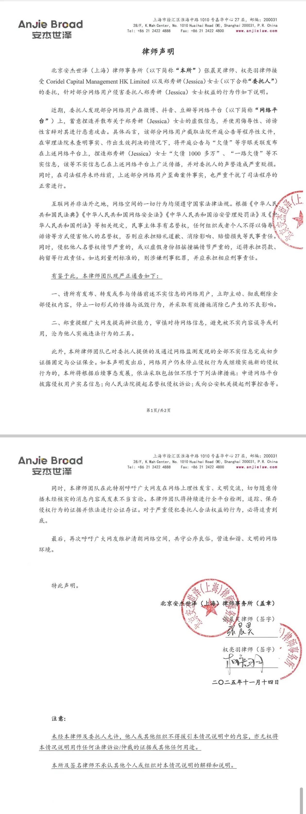 『郑秀妍』的工作室很快就出来回应了。他们没有直接重复那些传言,而是通过律师发了个声明,说这些都是假的。工作室强调,网上那些说法是有人故意编造的,根本不是事实。他们要求相关的人赶紧删除这些不实信息,否则就要采取法律手段了。