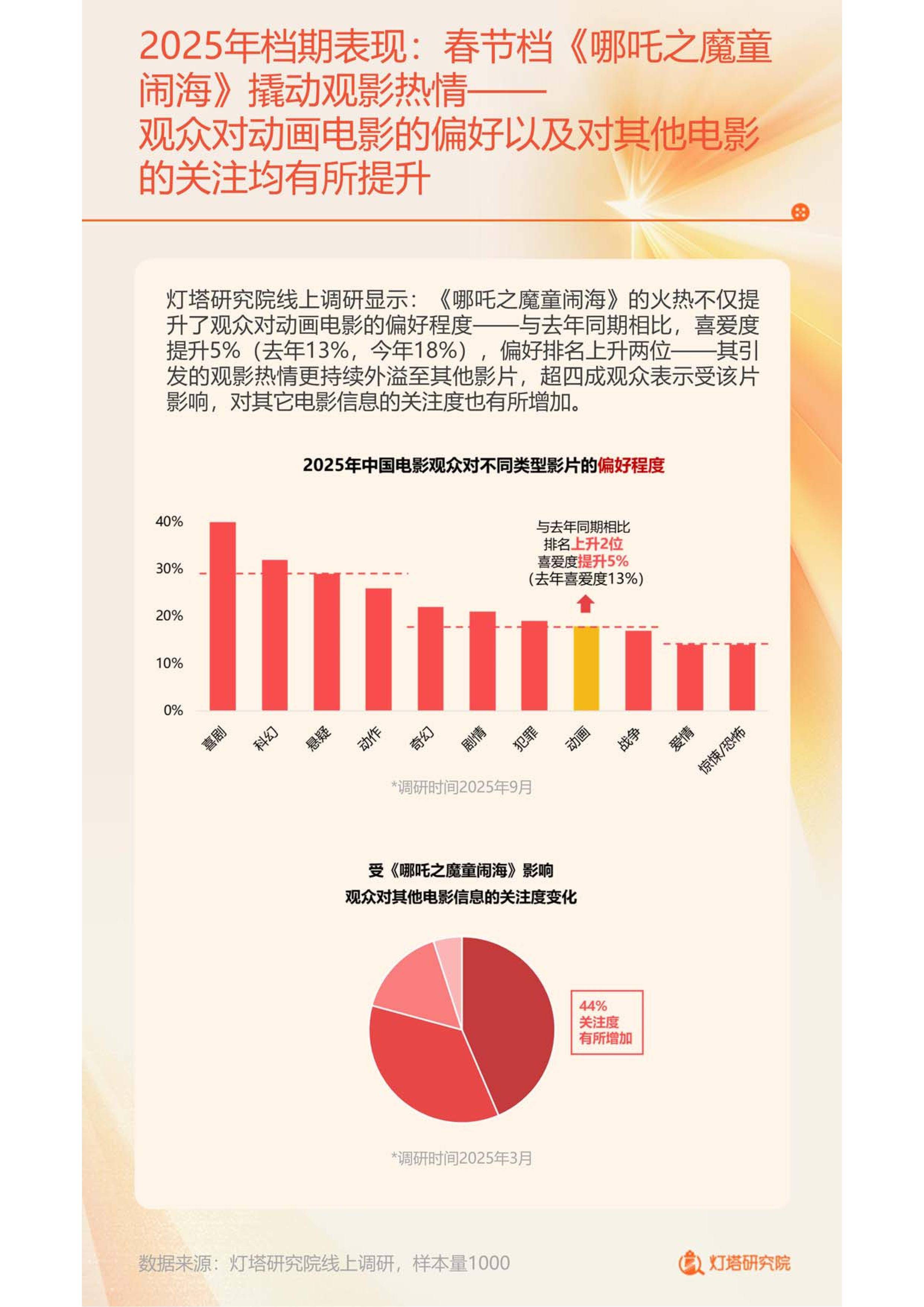 类型格局也在重构。动画电影强势崛起,不仅凭借《哪吒2》《浪浪山小妖怪》等作品赢得市场,更激发观众“支持国产动画”的情感认同。而垂类影片如《F1:狂飙飞车》《名侦探柯南:独眼的残像》通过精准定位与沉浸式营销,成功撬动圈层观众,证明细分市场蕴藏巨大潜力。相比之下,喜剧、悬疑、动作等传统热门类型供给与票房双双下滑,亟待创新突破。