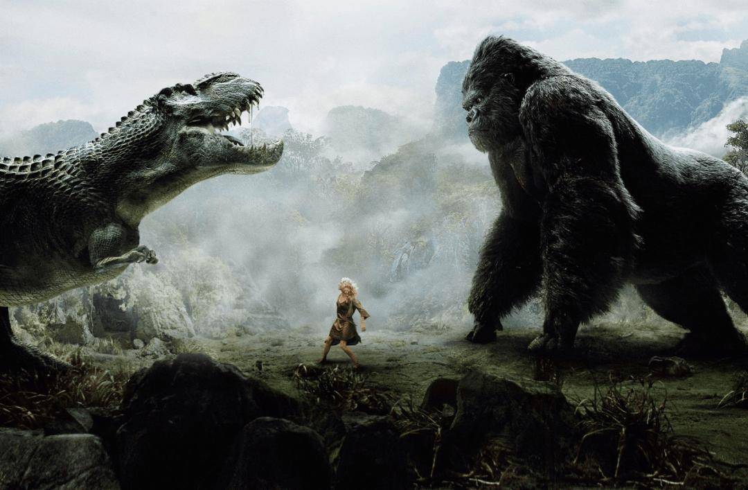 《金刚》(2005)中出现了霸王龙、巨型陆鳄、巨型昆虫等怪兽,统统不敌金刚