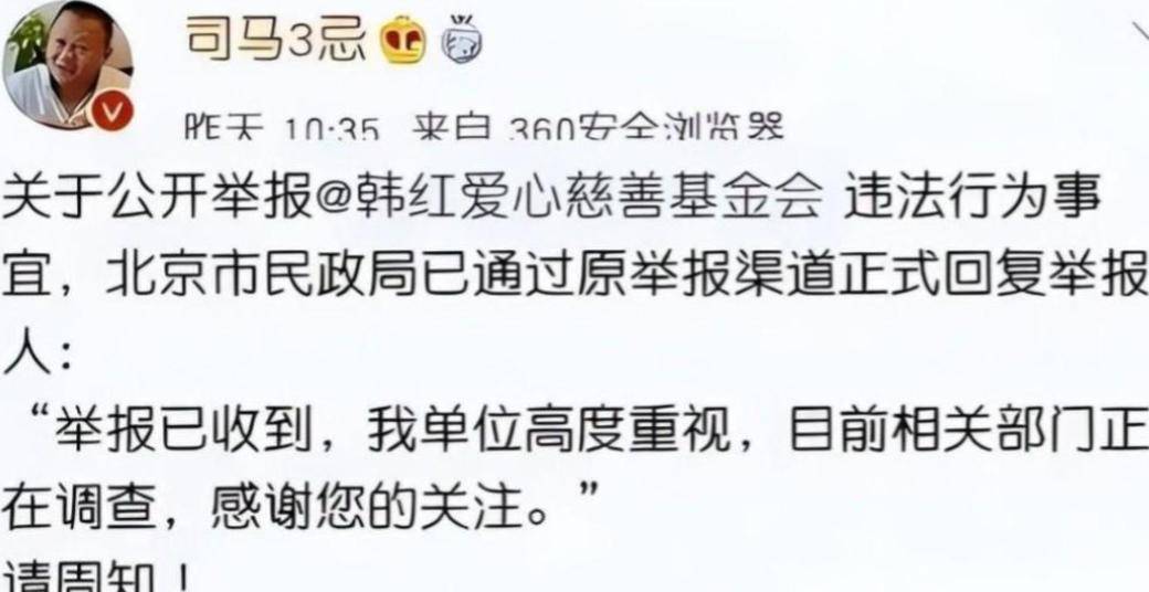 就在这个节骨眼上,一个网名叫“司马3忌”的用户,拿着自己的身份证🪪,在『社交平台』上对『韩红』基金会发起了实名举报。他抛出的指控特别吓人——“贪污上亿”“非法募捐”,一下子就把话题炒热了。这个指控正好抓住了基金会当时的一个弱点:善款明细还没公开!举报的人很聪明,他利用了大家对善款去向的极度关心。他才不管你是不是在前线救人,也不管你是不是真的没时间睡觉,就只抓着一点:程序上有问题。因为后勤人手严重不够,信息公开的工作确实拖后了。这一点被无限放大,还被恶意解读成“贪污”的证据。