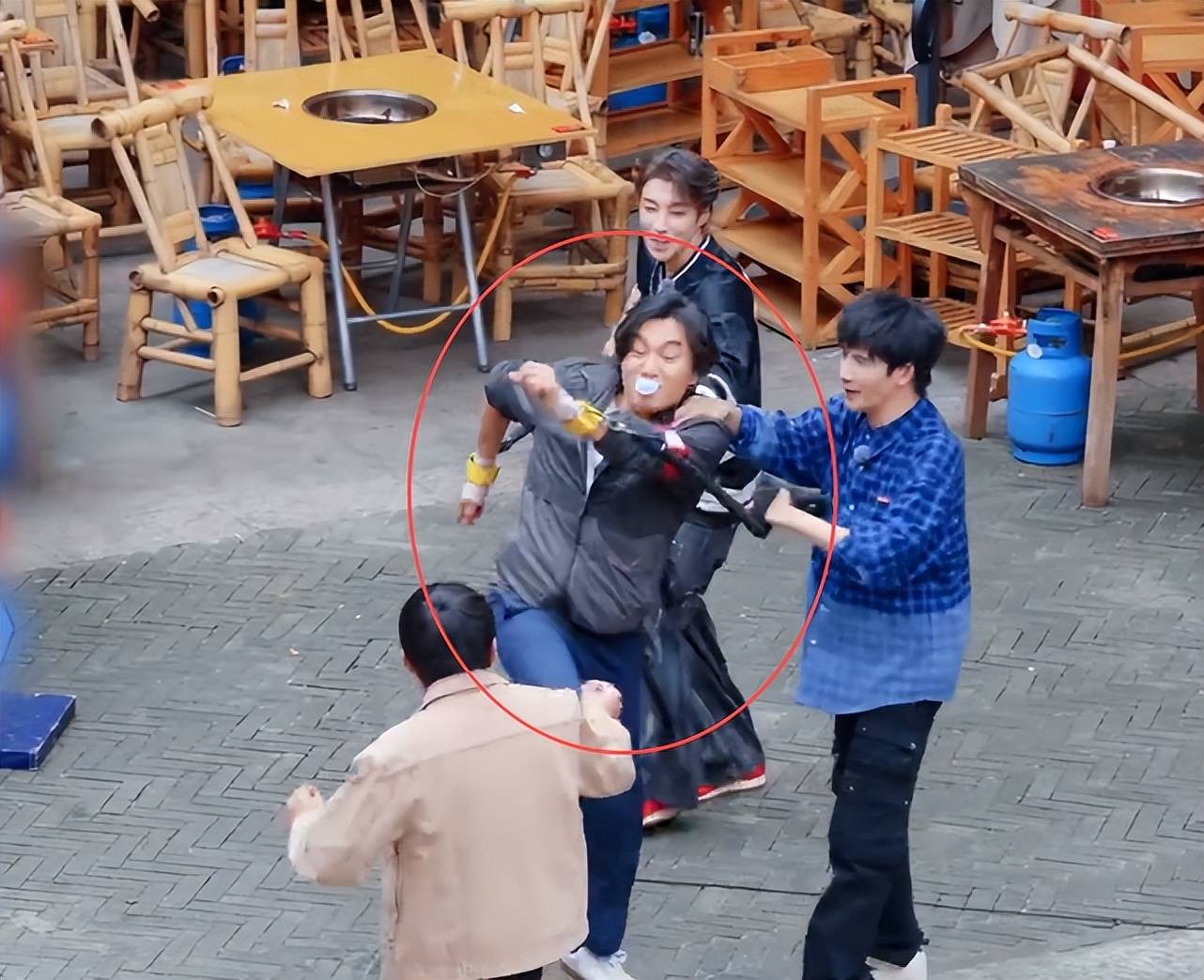 这次成都录制的“你比划我猜”环节,节目组给『秦昊』设计了双重束缚:双手被捆绑,嘴里叼着奶嘴。当题目抽到“拍屁股走人”时,『秦昊』焦急得满场跳跃,不停地拍打自己的屁股,然而徐志胜却一脸认真地猜测“走屁”,气得『秦昊』五官扭曲,差点爆发。
