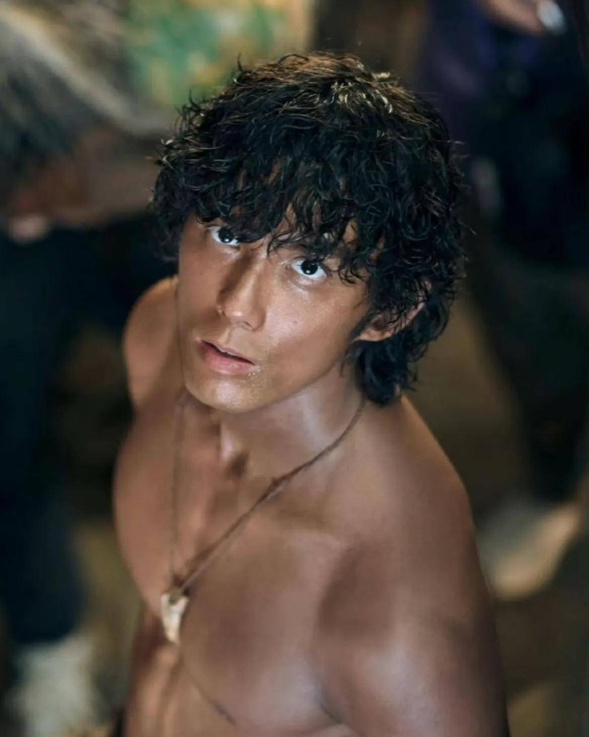 他演的阿荡简直就是白月光本光——顶着一头天然卷发,做事全凭本能。看到有人落海,想都不想就纵身跃下,那种未经雕琢的纯粹善良,瞬间击中人心。
