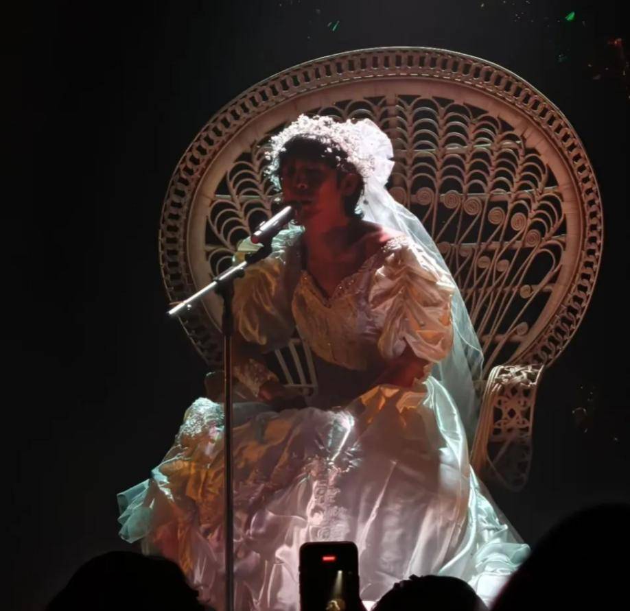 看着姜思达身着白纱笑靥如花的模样,不知情者真会以为他找到了人生归宿。只是现场诡谲的灯光布置,让这份"喜悦"蒙上了一层说不清的阴郁。