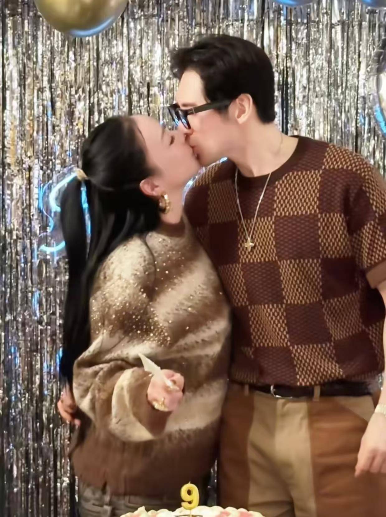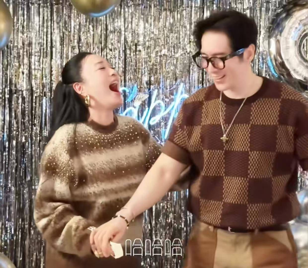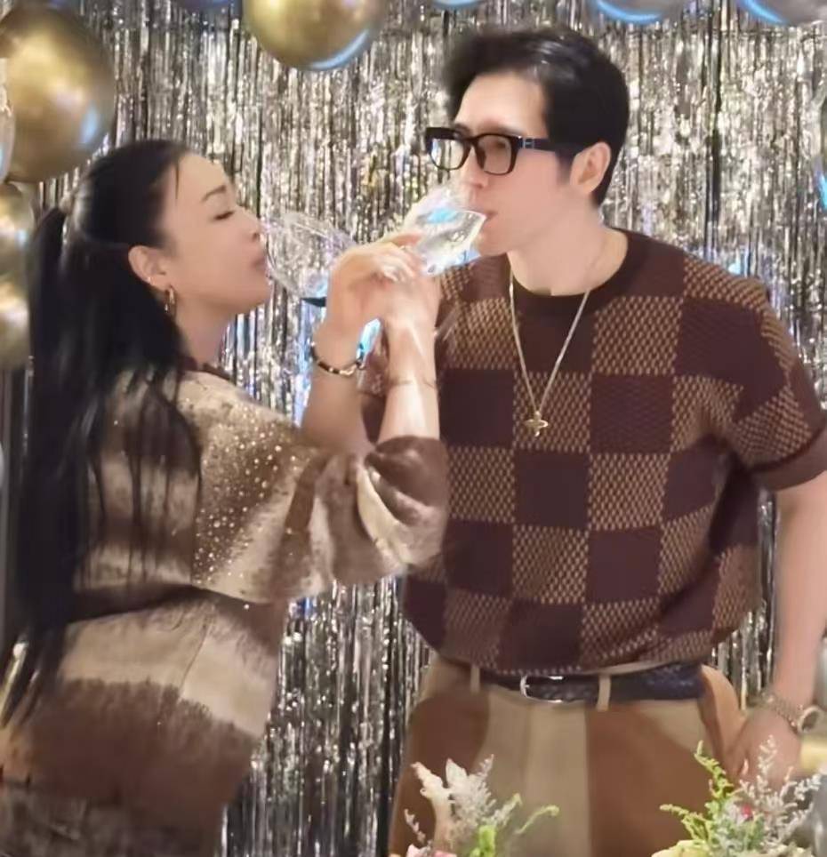 切蛋糕时出现高甜插曲:当『钟丽缇』喊出"早生贵子"的祝词,原本淡定切蛋糕的张伦硕瞬间笑出八颗白牙。这个表情包级变脸被镜头精准捕捉,成了视频最动人的彩蛋。