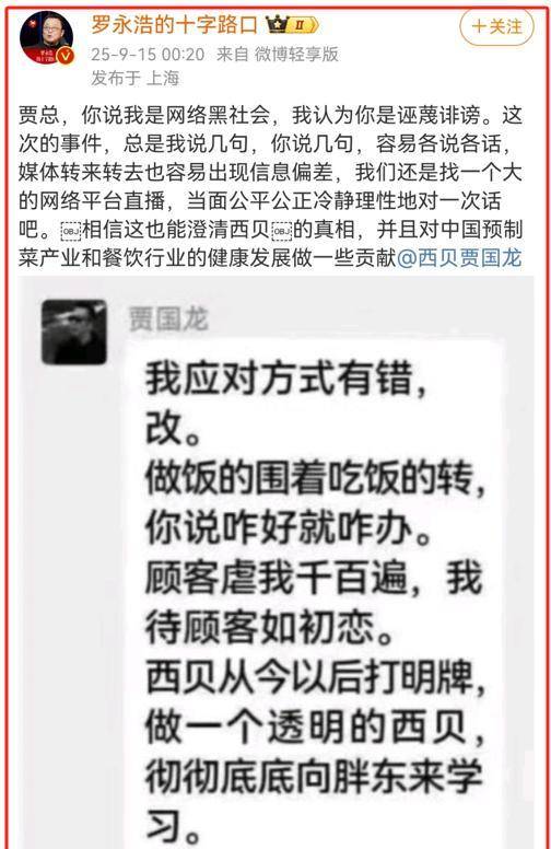 预制菜行业的新规才刚亮相,罗永浩一句“江湖再见”瞬间点燃全网好奇心!大家正猜测这出商战大戏是否迎来终章,谁知贾国龙突然甩出“网络黑嘴”的标签,硬生生把剧情推向新高潮——