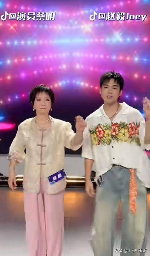 两人在灯光绚烂的舞台上,跟着轻快的节奏随意舞动,互动默契,整个氛围特别轻松愉快。蔡明老师跳得自在又享受,很有那种“松弛感”。