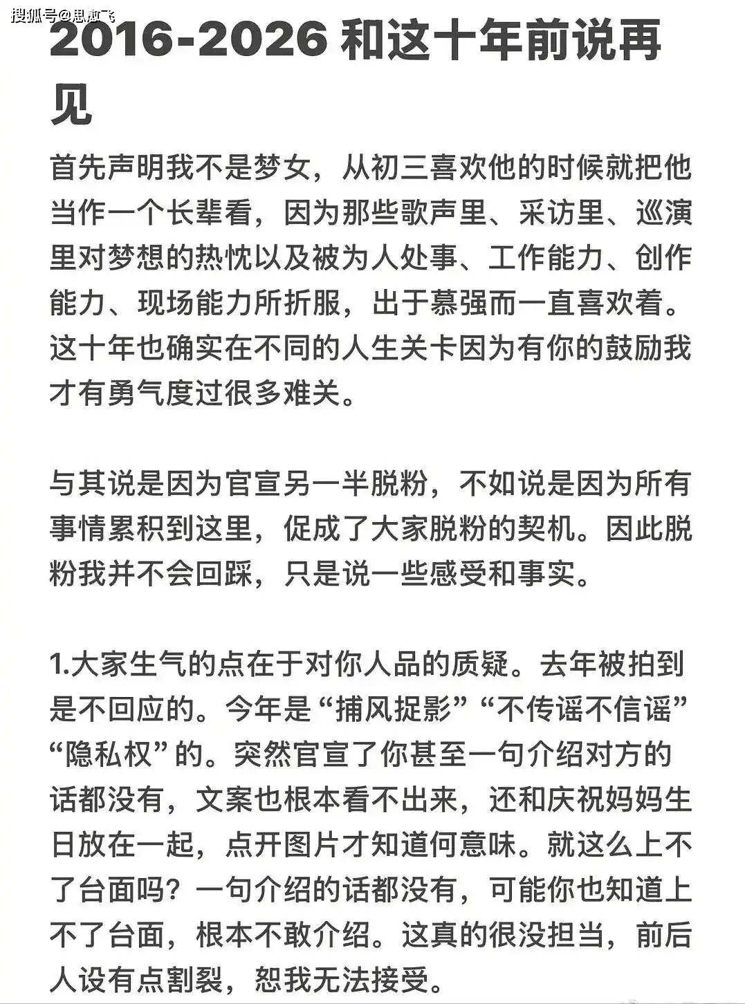 选择脱粉,实是深感这十载岁月的倾心付出皆付诸东流,不值一提。