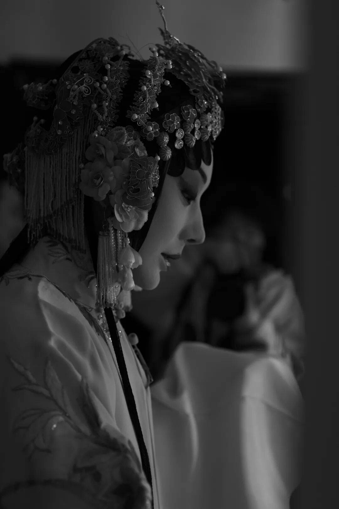 戏曲演员的“本钱”可能在其表现力和艺术生命方面具有决定性意义。郭玮扮相秀丽,身量纤纤,具有中国古典女性♀️的柔弱美感,因此塑造《锁麟囊》中的薛湘灵、《春闺梦》中的张氏、《荒山泪》中的张慧珠等程派剧目人物时很容易赋予观众切实的代入感,表现石评梅等现代人物的精神面貌时也因本身具有的书卷气和温婉气质而游刃有余。郭老师本人是那样的清瘦,唱念做表却又是那样的神完气足,不得不说是“瘦瘦的身体,大大的能量”,也充分说明其用嗓等表演技巧是十分科学的。她的唱法强弱对比十分明显,如“泪湿衣襟”的“襟”字,在弹拨乐的衬托下,完全是高位置共鸣下的以气催声、柔中寓刚,颇得程砚秋先生所追求的那种静而幽怨的意味。这种音色的美感让人觉得不会出戏,这就是富家千金的声线,这就是满腹骄矜大小姐的形象。