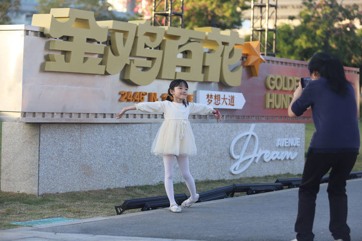 游客在“金鸡百花梦想大道”上拍照游玩。今日霍州发(曾德猛摄)