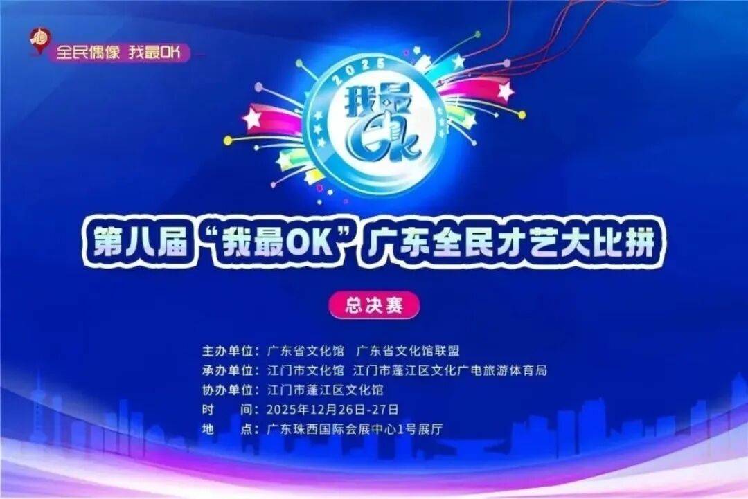 巅峰之战,谁与争锋!12月26日至27日,第八届“我最OK”广东全民才艺大比拼总决赛,在五邑侨乡—江门市拉开激烈战幕。本届总决赛由广东省文化馆、广东省文化馆联盟主办,江门市文化馆、江门市蓬江区文化广电旅游体育局承办,江门市蓬江区文化馆协办。这是群众艺术的舞台,是民间才艺的聚会,更是万众瞩目的年度文化盛事。每一个闪耀的才艺瞬间,都是热情碰撞的火花❇️,是活力四射的欢聚,也是一段追逐梦想的灿烂征途。