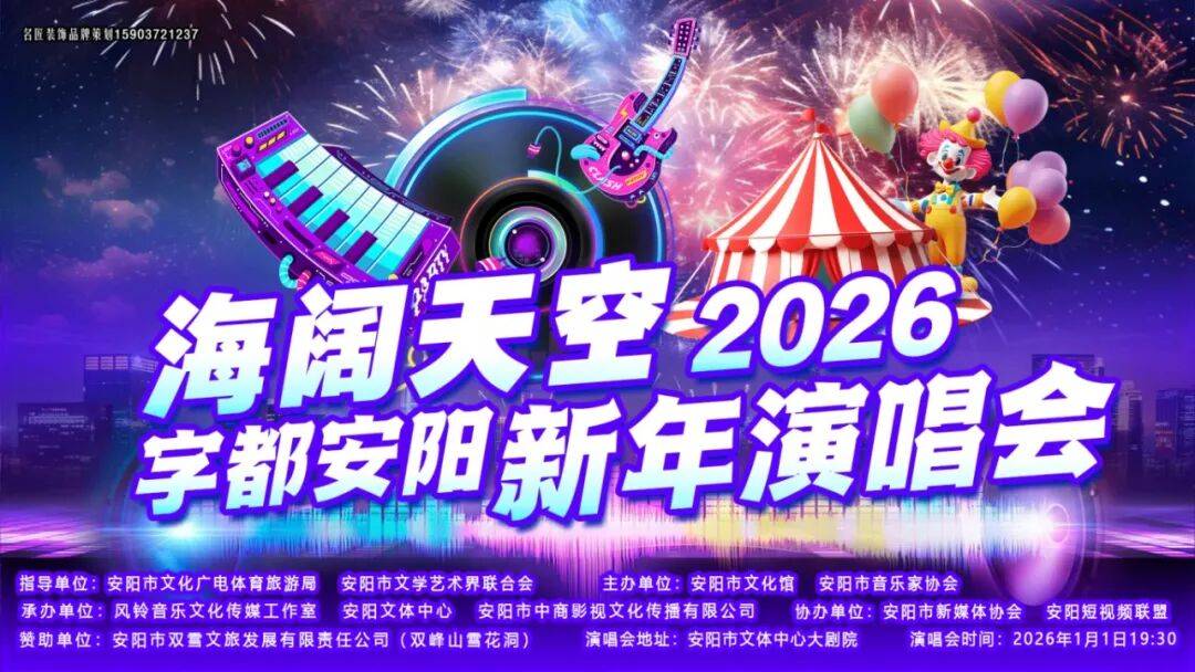 为丰富重大节庆文化活动供给,打造“老中青+网络达人”线上线下全民参与的城市演唱会文化IP,按照政府主导、社会参与、多方合作的模式,邀请本地知名音乐人、网络达人,联动全国影视与音乐机构,联合举办“海阔天空”2026字都安阳新年演唱会。