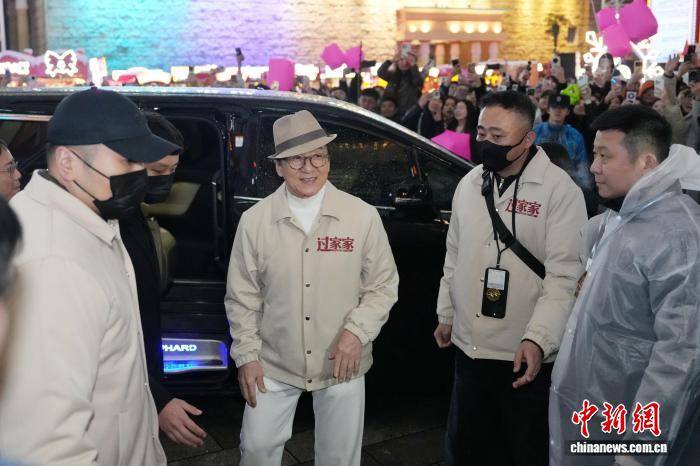 12月31日晚,演员『成龙』携电影《过家家》主创人员来到长沙世界之窗与众多市民、游客一同倒数迎接2026年,并送上新年祝福。图为『成龙』亮相长沙跨年夜现场。中新社记者 杨华峰 摄