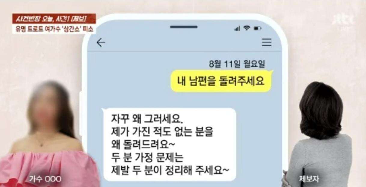 最近,韩国网络再次掀起轩然大波,原因是一宗婚外情事件,而事件的焦点竟然是一位知名女歌手。一切起因于一位家庭主妇在JTBC的一档节目中亲口揭露——她辛辛苦苦操持家庭二十年,却发现丈夫背着她与别人秘密同居。