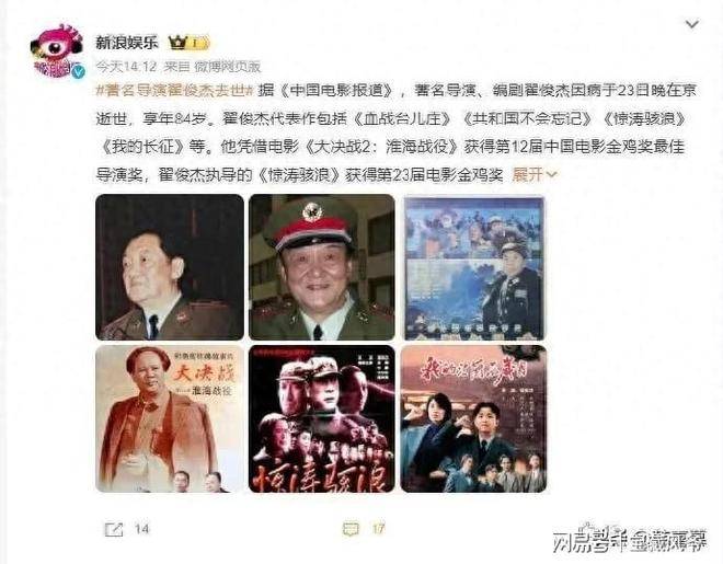 中国电影界近日失去了一位资深导演——翟俊杰,他因病于2023年12月23日去世,享年84岁。翟俊杰的离世让电影界为之一痛。他的作品《血战台儿庄》和《我的长征》等,不仅展现了深厚的历史感,还蕴含着人文温度,深深地触动了观众的内心。翟俊杰一生致力于电影创作,倾注了无尽的热情与执着,将自己的梦想与追求完美的态度倾注到银幕上,留下了不朽的印记。