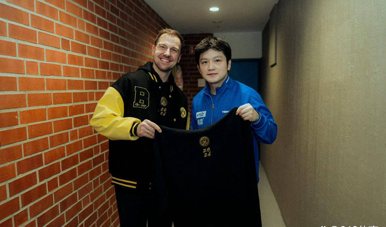 目前,樊振东正代表德国萨尔布吕肯俱乐部征战德甲赛场,而波尔作为多特蒙德俱乐部的忠实球迷,不仅曾经陪同樊振东一起现场观看多特蒙德的比赛,还多次用行动表达对老友的支持。这次波尔特别挑选了多特蒙德马年系列的新款卫衣送给樊振东,这份礼物🎁虽然不大,却承载着满满的心意,让樊振东相当感动。在镜头前,樊振东笑盈盈地展示这件带有浓烈节日氛围的卫衣,显得格外温馨和惬意。