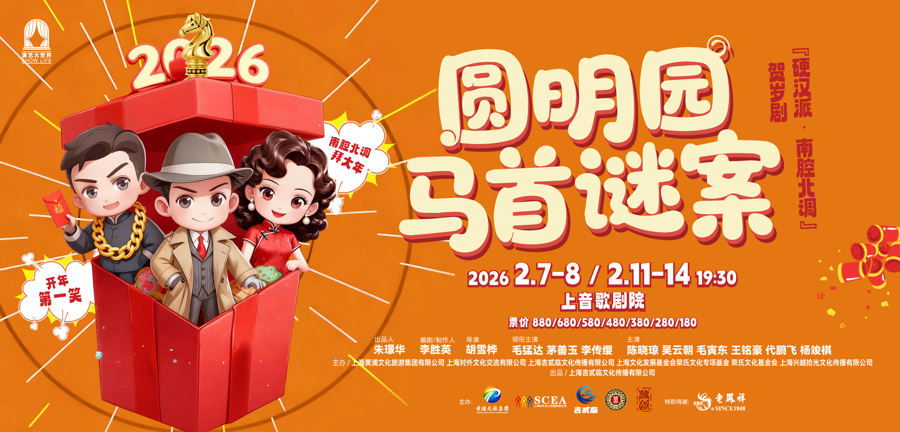 美貌女子、私家侦探、离奇命案、国宝追踪——当硬汉派侦探遭遇海派风情,一场迷雾重重的真相之战即将在舞台拉开帷幕。方言贺岁话剧《圆明园马首谜案》以“硬汉派”推理小说《马耳他黑鹰》为蓝本,将故事移植于上世纪30年代的老上海,以国宝“马首”为核心线索,串起兼具悬疑、幽默与温度的贺岁故事。该剧由胡雪桦导演、李胜英编剧,吴孝明任总策划。滑稽名家毛猛达、沪剧名家茅善玉与知名话剧演员李传缨联袂主演。