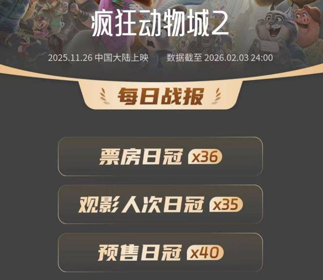 春节档前的电影市场就像一潭死水,尽管各大新片纷纷上线,却始终没有激起多少波澜。上映已超过两个月的《疯狂动物城2》依旧稳居榜首,一连七天赢得了日冠,完美验证了其超强的长尾效应,也间接说明了同档期的新片实在难以匹敌。