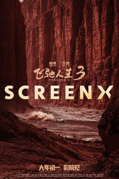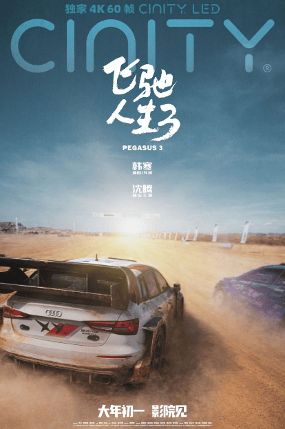 电影《飞驰人生3》剧组为给观众呈现更加震撼的视听冲击,辗转甘孜九龙、德令哈、宁波、上海等多地取景拍摄,无论是海拔4000米以上的川西秘境,还是原始壮阔的青海戈壁,皆化作片中亚洲最难洲际比赛“沐尘100”拉力赛的实景。在编剧兼导演韩寒看来,高海拔地区的自然地形与多变气候不仅给比赛增添了张力,更提供了绝佳的视觉效果,让人沉浸到高山地貌与植被带来的震撼之中。同期发布的IMAX、CINITY、中国巨幕、杜比影院、SCREENX、HDR LED、DTS:X、4DX多款制式海报淋漓尽致地展现了新赛道沿途的震撼场景。IMAX制式海报中,赛车在壮阔的沙地上急速飞驰,车尾卷起滚滚沙尘,拖出长长轨迹,将竞速感拉满之余,亦让人大开眼界。CINITY制式海报聚焦比赛冲线的激烈场面,在经历漫长征途之后,赛车的车况并不完美,但终点已然在望,引擎不熄,斗志不灭。中国巨幕制式海报呈现了神奇的雅丹地貌,天地辽阔壮美,张驰和孙宇强并肩而行,每一步都充满坚定与热血。杜比影院制式海报采用对称构图,一条笔直的赛道在戈壁滩上延伸,张驰驾驶的赛车迎面而来,让人仿佛听到引擎的轰鸣与风的呼啸。SCREENX制式海报中,连绵的深红山脉高耸,极具视觉冲击力,赛车无惧复杂地形,气势磅礴地穿梭其间,临场感十足。HDR LED制式海报中,赛车在原始的砂石路面上疾驰,车尾灯光犹如喷薄而出的尾焰,尽显一往无前的气势。DTS:X制式海报和4DX制式海报则选用了赛车雨中漂移的画面,聚光灯下这辆车就是这条赛道上的主角🎭️,车尾摆动溅起雨水,仿佛一场酣畅淋漓的热舞。更大的银幕、更鲜活的色彩、更逼真的声音,多种特效制式将在马年新春带给观众一场身临其境的大银幕飞驰体验!