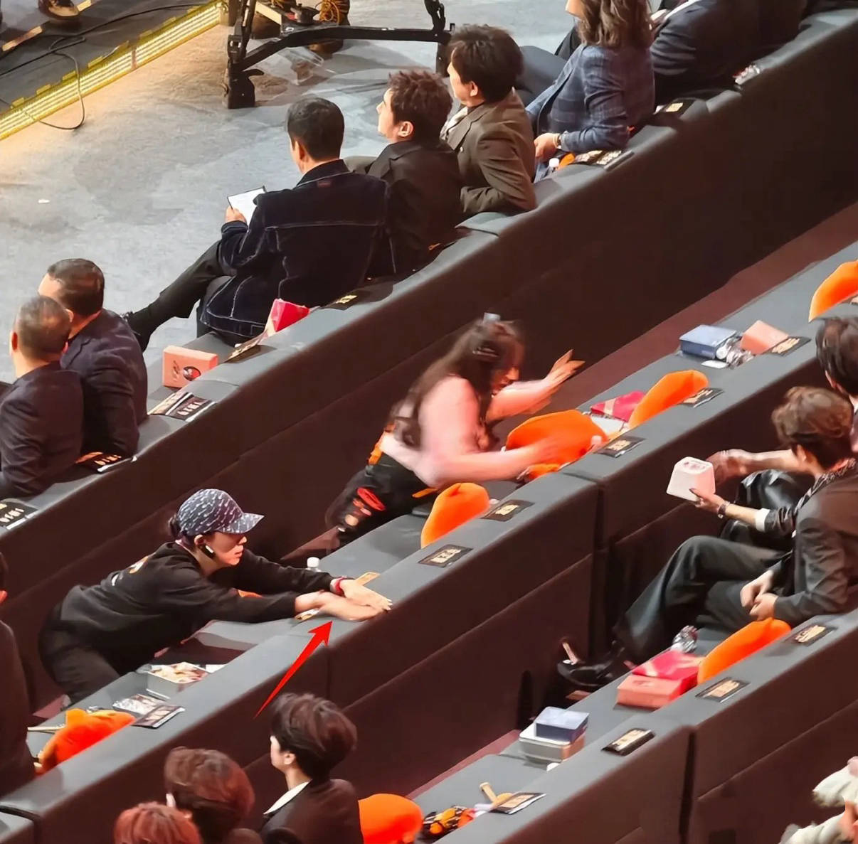 因为邀请到的『明星』️艺人众多,从出场顺序到座位排列,都是事先规划好的。到场的艺人,只需要在工作人员引领下走位即可。