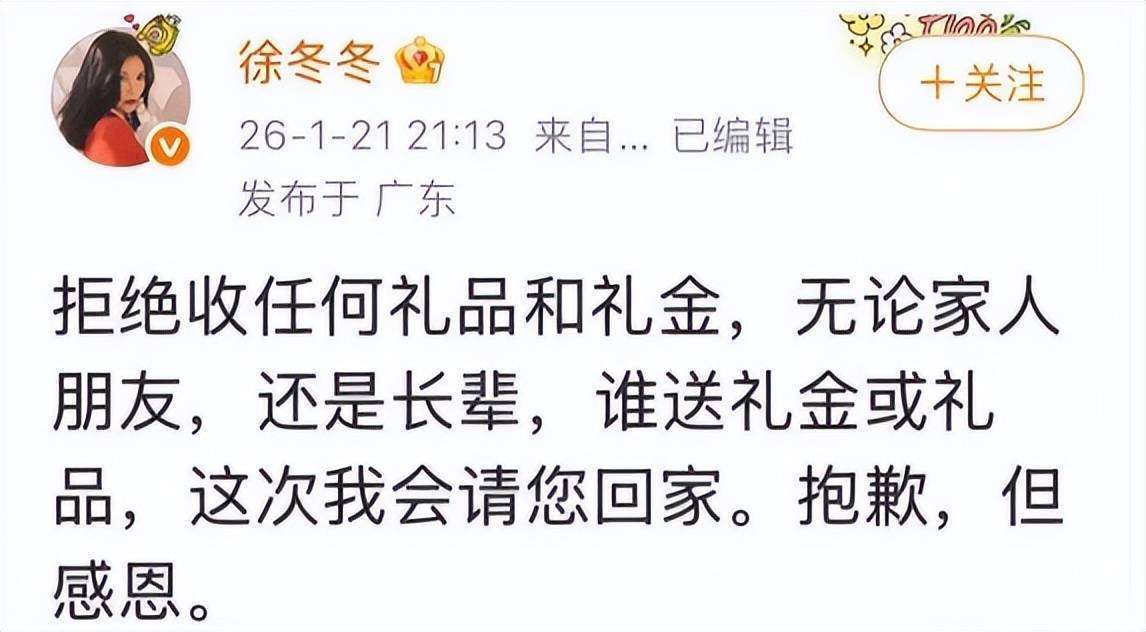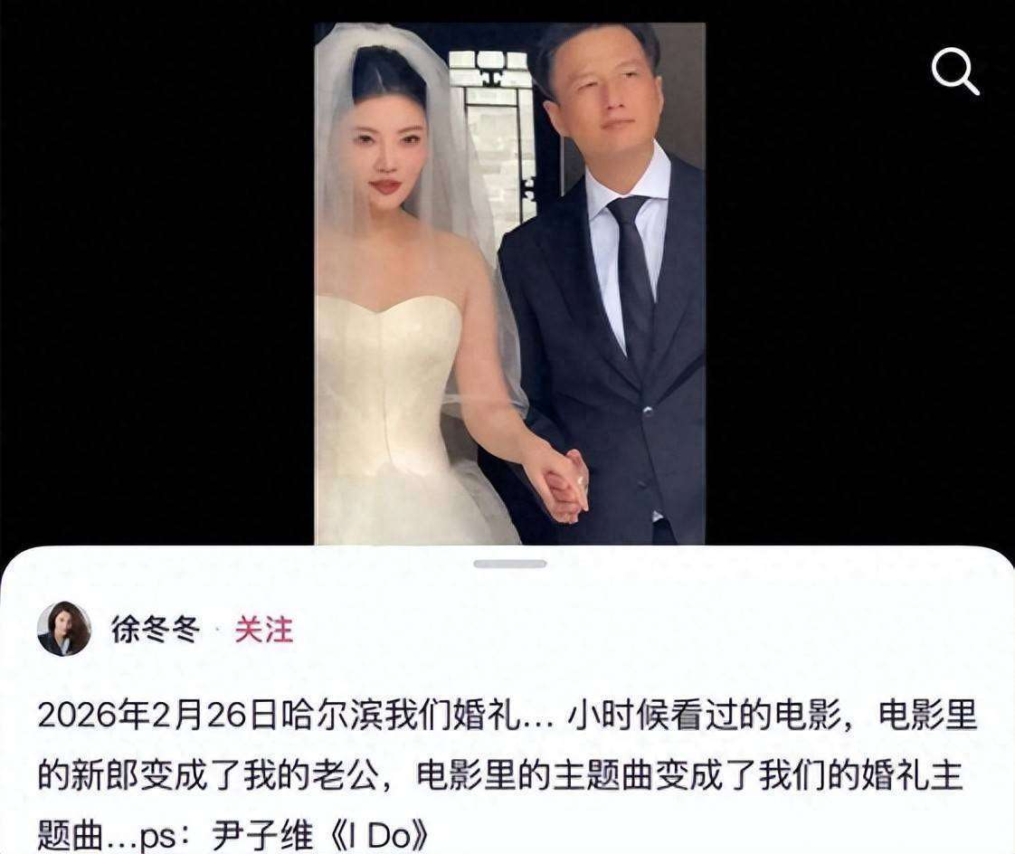 1月21日,『徐冬冬』与『尹子维』在『社交平台』上发布了有关婚礼安排变动的消息,原定于2026年2月26日在哈尔滨举行的婚礼将因突发原因进行调整。调整的原因是『徐冬冬』一位亲人病情严重,这位亲人是『徐冬冬』父亲的亲哥哥,从小就将她抚养成人。面对亲人病重,『徐冬冬』和『尹子维』决定将婚礼形式调整为仅限亲友参加的小型家庭式婚礼,不再对外公开,也不会进行传统的婚纱礼服或任何仪式环节。1月22日凌晨5点左右,『徐冬冬』通过『社交平台』进一步确认了这个调整,表示经过全家商讨后,决定将原本盛大的公开婚礼转为更加简化的家庭聚餐形式,重点是陪伴生病的亲人。