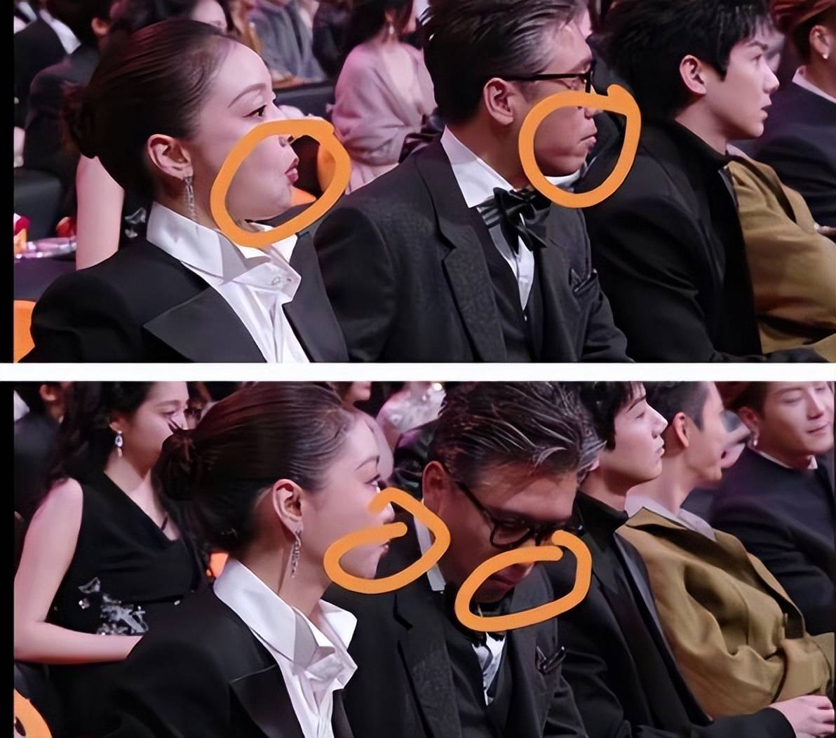 典礼进行中,身着正式礼服的『高叶』与李乃文被发现在座位上悄悄分享食物。整个过程默契十足,宛如一场精心策划的“地下行动”:两人保持同步节奏,小口咀嚼、低头吞咽,每一个动作都小心翼翼,生怕食物碎屑掉落于华服之上。李乃文在完成“任务”后,还不忘拿起水杯喝水“缓一缓”,为整套动作增添了仪式感的收尾。当镜头扫过,两人略显局促、强装镇定的表情,与他们身处盛大典礼的正式装扮形成了强烈的喜剧反差,被网友精准调侃为“这俩是真饿了”,充满了“上课偷吃既视感”。