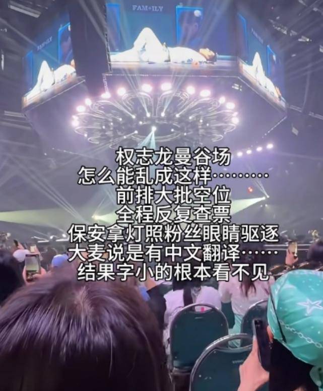 演唱会大屏的字幕本来是粉丝跟着一起合唱用的,这么小的字幕也是难得一见,跟之前卖票时炒作的完全不对版,也让不少网友气的无语。