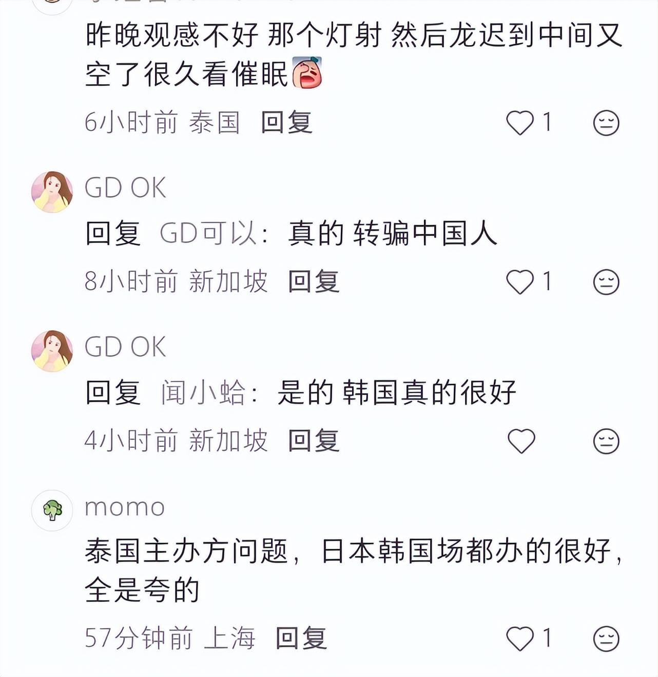 没想到这场演唱会是吐槽声一大片,甚至有网友直呼太双标,日、韩演唱会都没出任何岔子,这次曼谷场就出岔子了。
