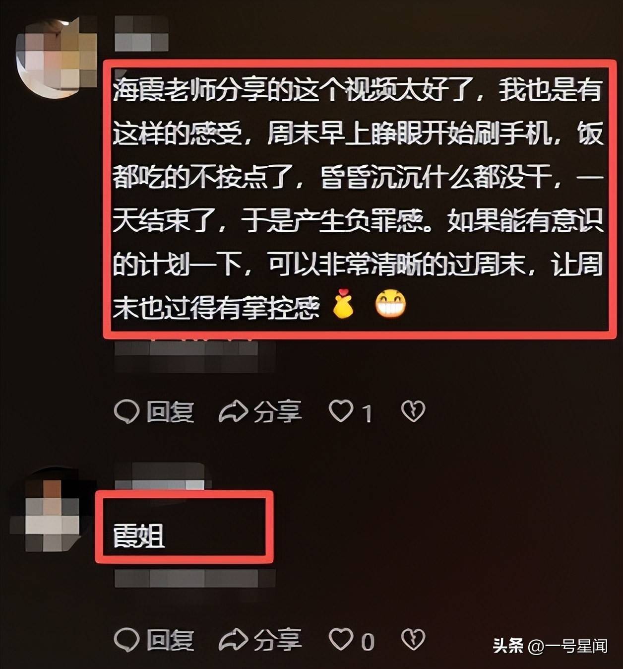 虽然离开了央视的主持岗位,海霞依旧保持着公众人物的身份,继续出现在大家面前,分享她的人生感悟和对社会的看法。最近,她在『社交平台』发布了一段视频,谈论她对周末的看法。她认为,大多数人觉得周末过得太快,是因为没有合理规划时间。她建议大家,在休息的同时,也要为自己制定计划,让每个周末都过得有意义。