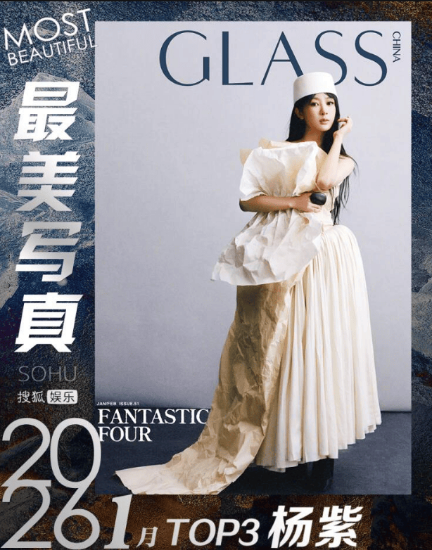 『杨紫』这次的杂志封面,可以说是完完全全的风格突破。本期大片创作以中国四大发明之一的纸为灵感,搭配极简白色头饰,造型充满未来感与环保理念。『妆容』上也仅仅使用了裸色唇妆,眼神清冷疏离,既灵动又高级。她的肢体舒展也张弛有度,能够把实验性的服装穿出叙事感,不愧是时尚界的宠儿。