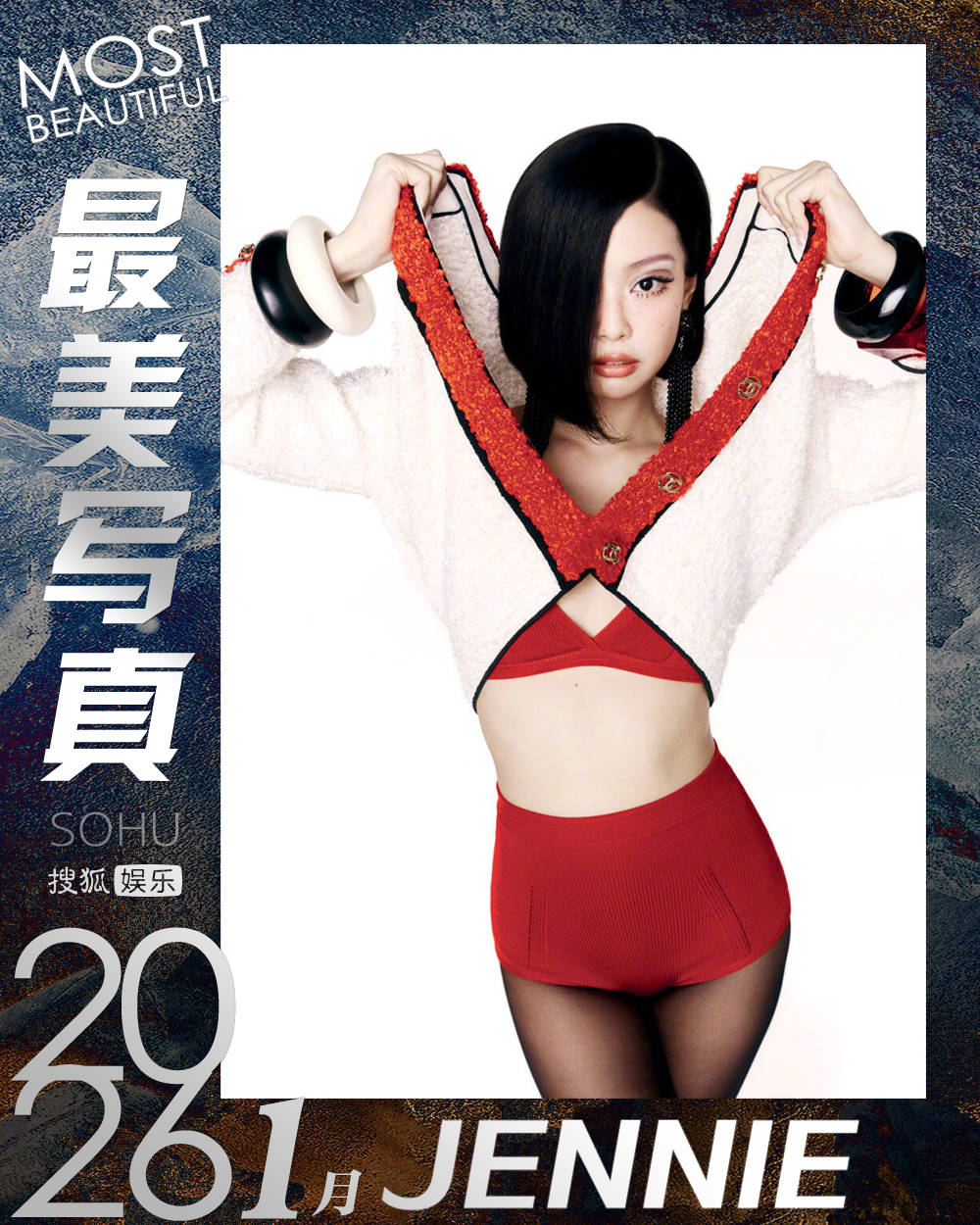 JENNIE 的杂志大片一向机具个人风格,这张也不例外,她以极具戏剧张力的姿态定格在镜头前,身着红白撞色的短款外套🧥,内搭同色系的红色内衣与高腰短裤🩳,在利落剪裁中透出慵懒又凌厉的性感。她不对称的斜分黑发遮住半张脸,眼尾微挑的『妆容』慵懒又性感。每一处细节都精准踩在时尚与个性的平衡点上。
